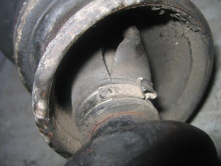 フロントのプロペラシャフトを外してみるとブーツが破けていた為ここから、水や砂が入りグリスが抜けてガタが発生した原因ですね(>o<")
