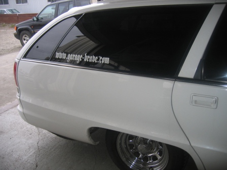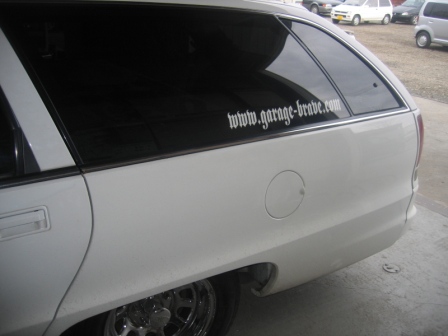 タイヤ交換に来てくれたカプリスワゴンオーナー様は大きいGARAGEBRAVEのステッカーを気に入ってくれてリアガラス両サイドにステッカーを貼ってくれましたV(○⌒∇⌒○)