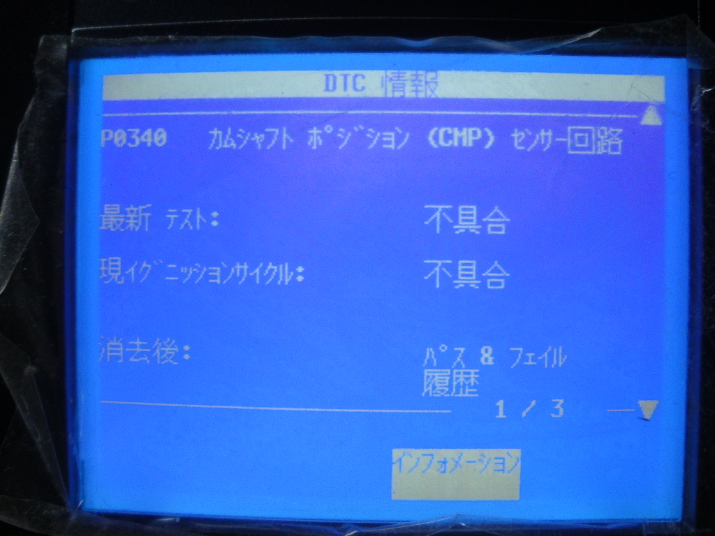 エンジンチェックランプ点灯後調子が悪くなったとの事なのでテスター診断してみるとカムシャフトポジションセンサーとでました。