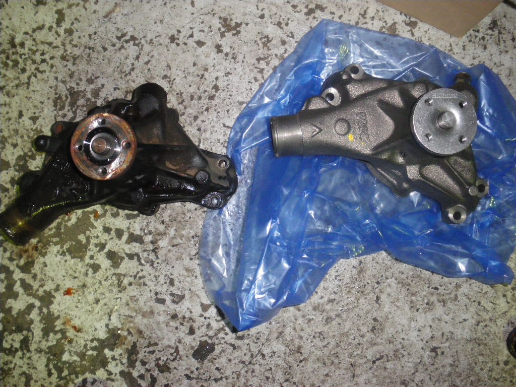 クーラント漏れしているウォーターポンプとNEWウォーターポンプ!