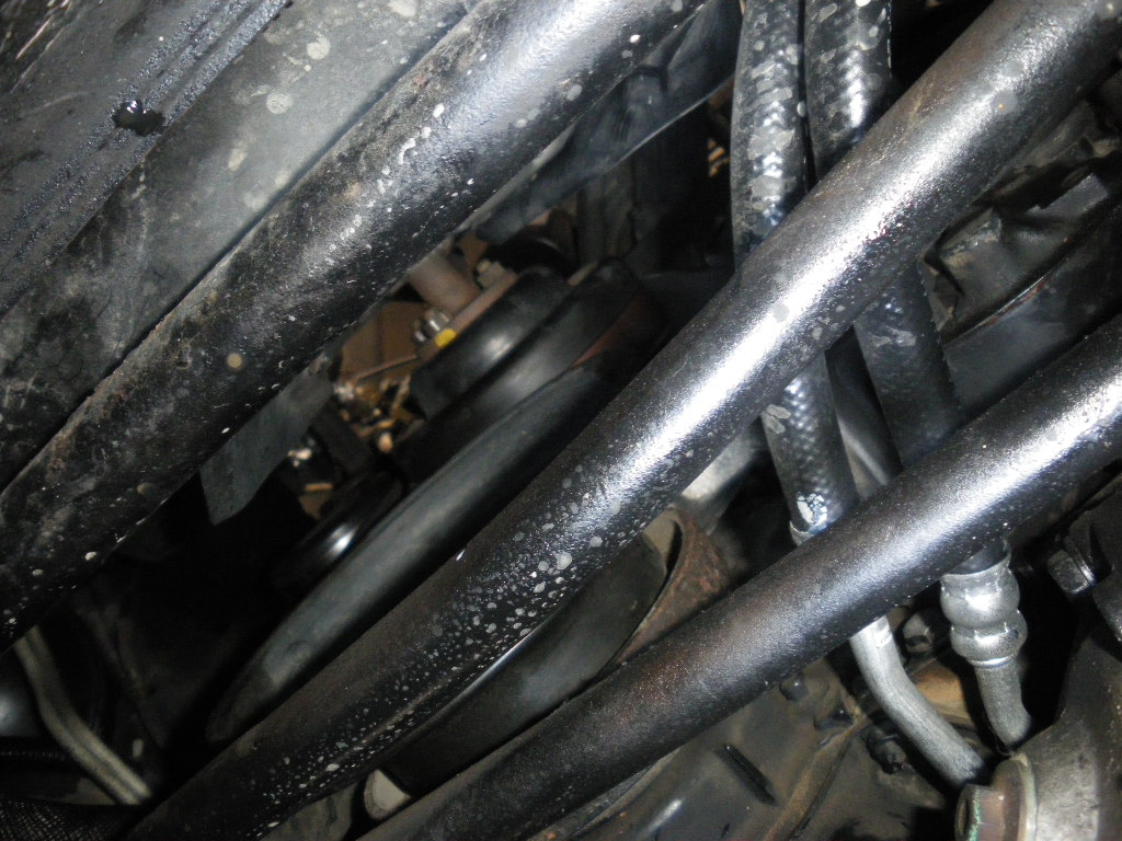 次はウォーターポンプからのクーラント漏れとオイルクーラーホースのオイル漏れとパワステホースのオイル漏れ修理です(>_<)