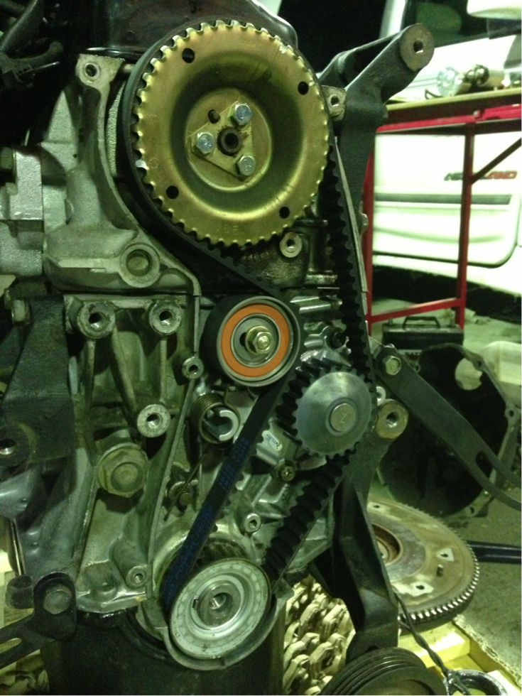 NEWエンジンのタイベル、テンショナー、ウォーターポンプ、フロントクランクシールを取替て(*´艸`)キャ
