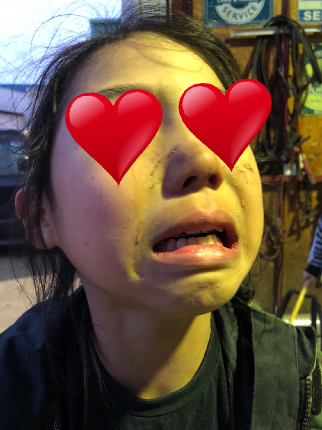汚い手で顔触るから真っ黒(笑)