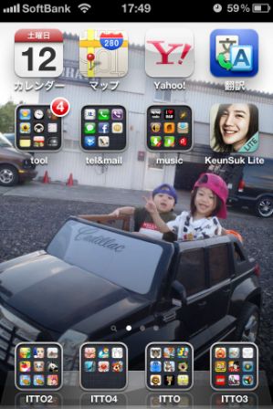 下段が息子のアプリフォルダで埋められていた(元々2ページ目に置いたあった物)!!!!!