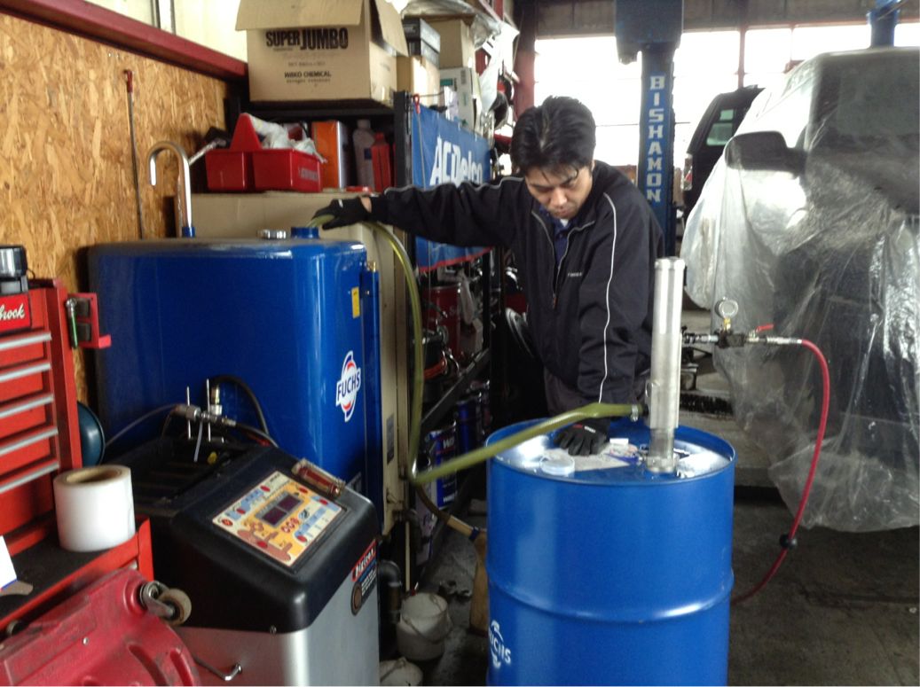A商会のTさんがFUCHSのエンジンオイルを補充に登場です。。。