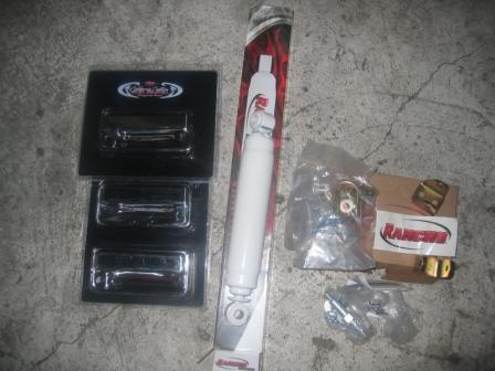 先ほども電話で、連絡しましたが部品が入庫しました(^^♪カリフォルニアカスタムのステンレスドアハンドルカバーとRANCHOのステアリングショクKITです(^o^)入庫日、連絡待ってま~す(^_^)v